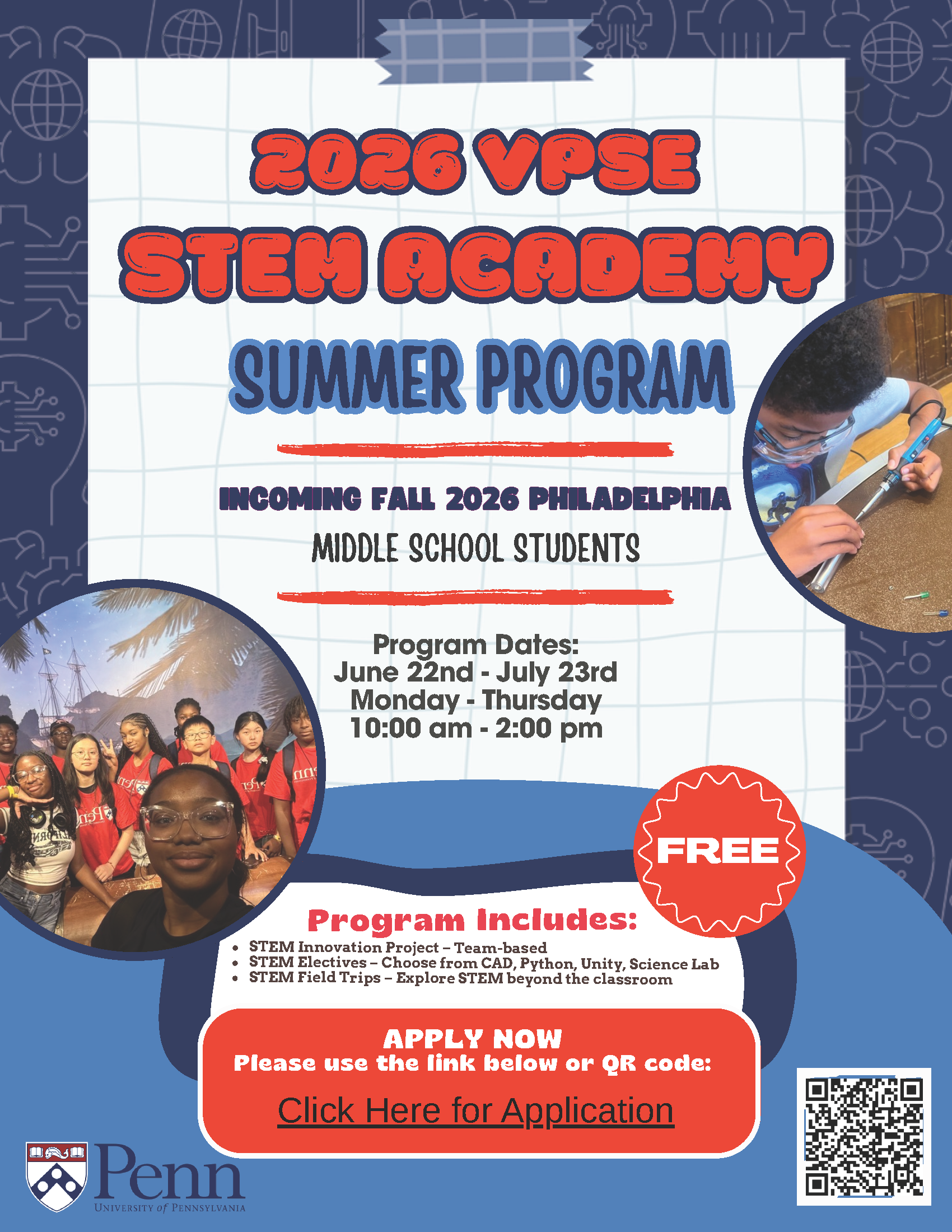 The VPSE STEM Academy provides K-12 students from Philadelphia with unique opportunities to engage in innovative STEM projects, develop essential skills in science, technology, engineering, and mathematics, and collaborate on hands-on learning experiences.